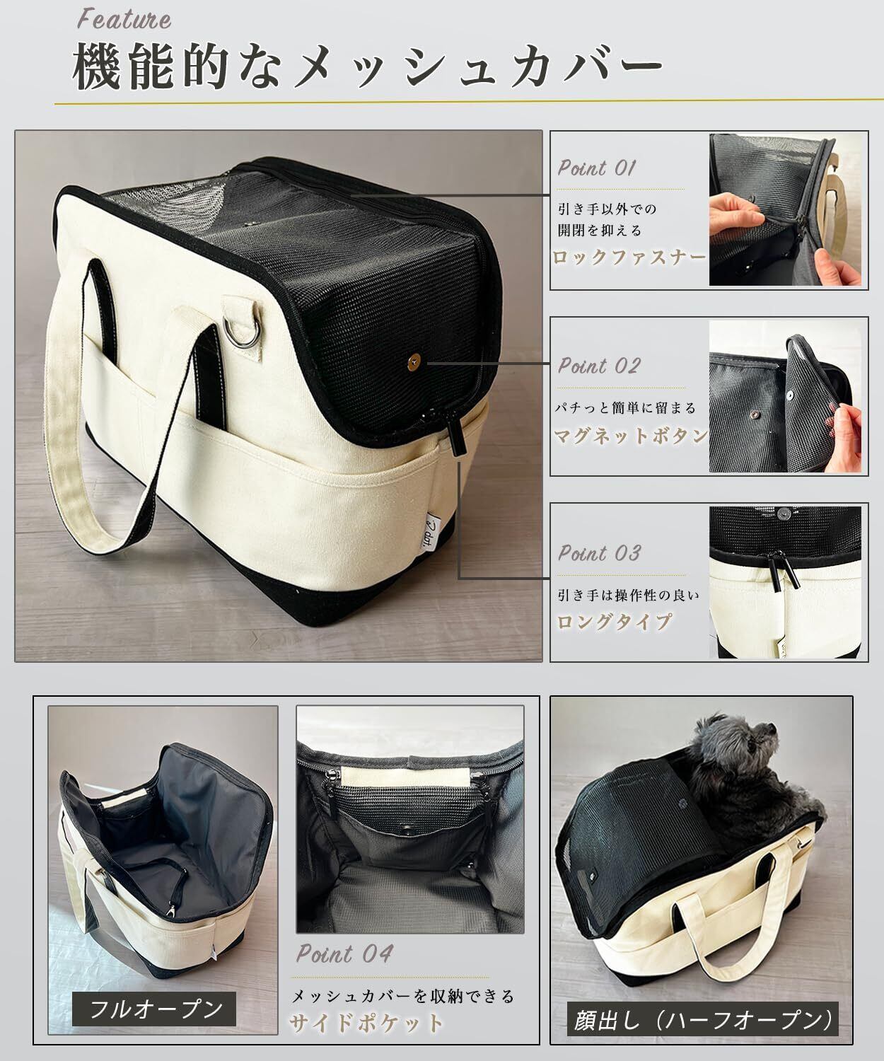 ✅【dot.オリジナル】デザインだけでなく機能性にもこだわった、ペットと飼い主さんのためのキャリートートバッグです。