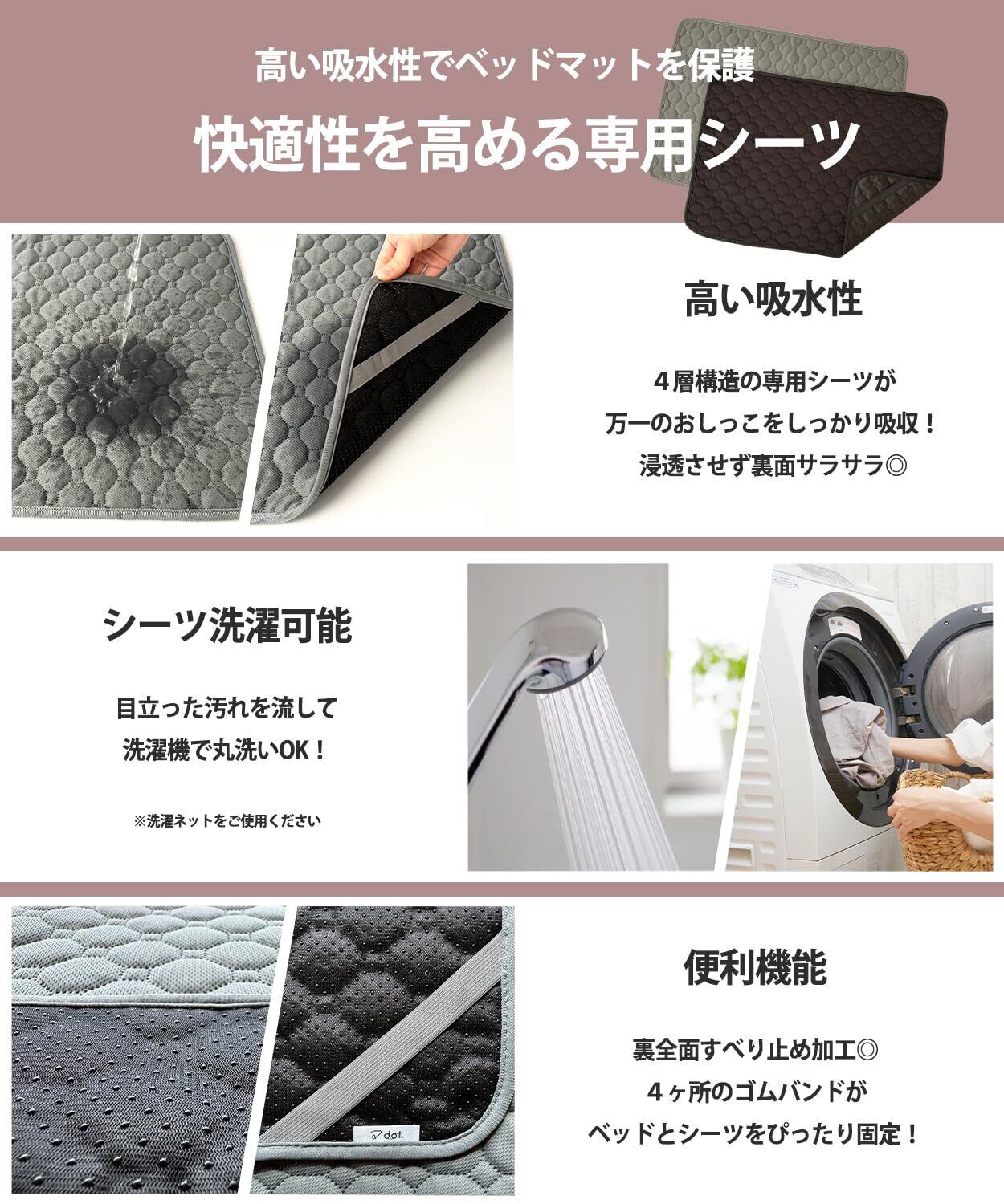 ✅【専用シーツ】ベッドマットに染み込まない、ゴムバンドでの固定が便利なシーツを付属